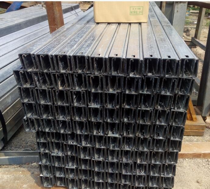 定型支架由主柱和托臂兩部分組成,主柱采用鋼膨脹螺栓固定在梁或頂板上,托臂掛固在立柱上面。立柱由角鋼加工而成,上面有成排的長方形孔,可以調(diào)整托壁的標(biāo)高。