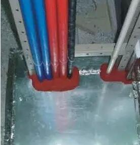 3、電纜及絕緣電線穿鋼管布線時(shí),應(yīng)在樓層間預(yù)埋鋼管,布線后應(yīng)在兩端鋼管管口空隙用防火堵料隔離。