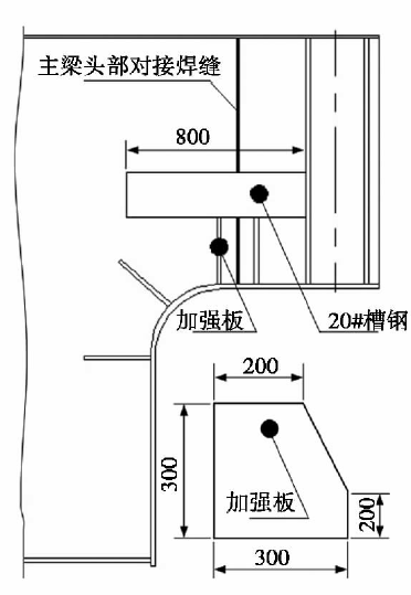 ( 2) 主梁頭部彎板開裂焊縫進(jìn)行修復(fù)、加固,如圖5 所示。