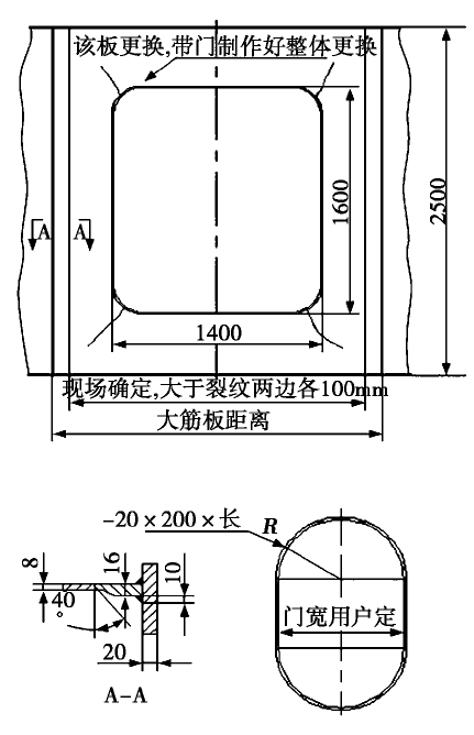 ( 1) 主梁副腹板人孔門整體更換,如圖4 所示;