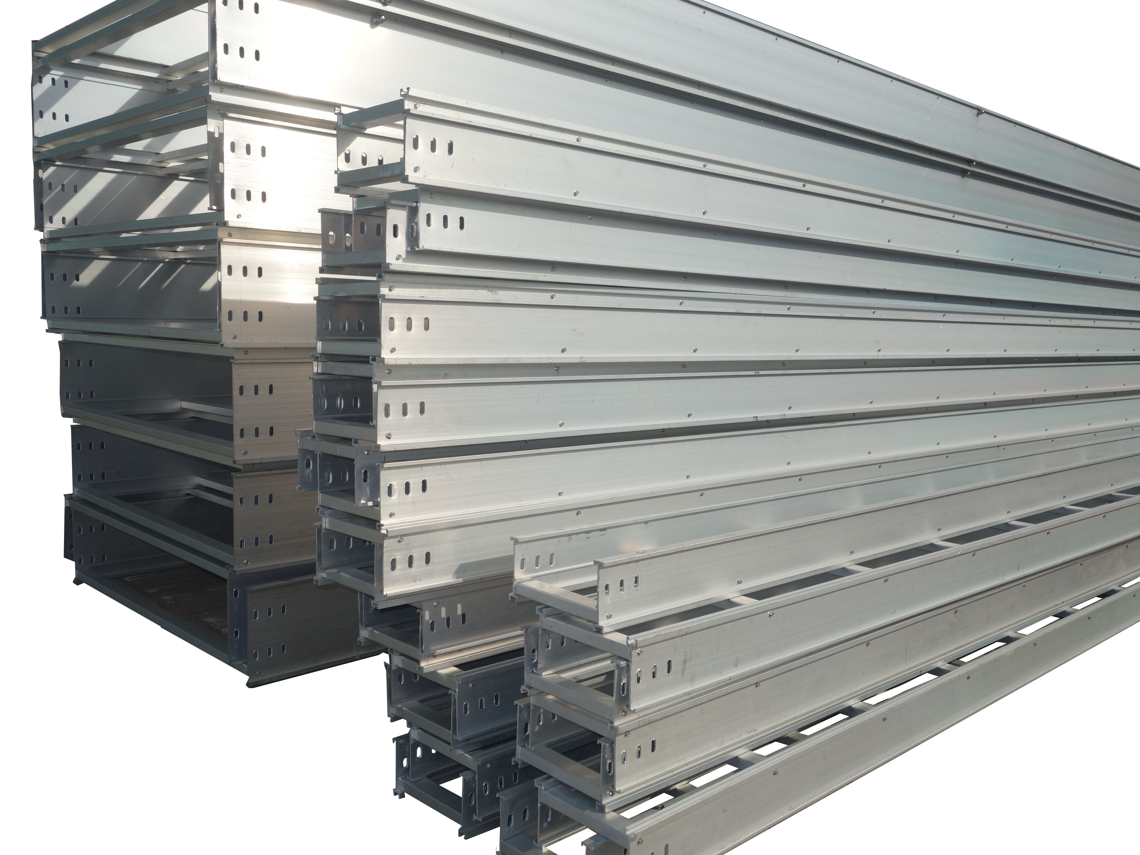 (4)橋架與支架間螺栓、橋架連接板螺栓固定緊同無遺漏,螺母位于橋架外側(cè);當(dāng)鋁合金橋架與鋼支架同定時,有相互問絕緣的防電化腐蝕措施