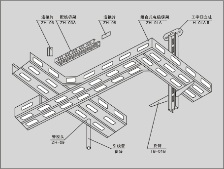 [0003]橋架在敷設(shè)路徑上必然會(huì)出現(xiàn)分支,以往的施工過程中,出現(xiàn)分支往往通過橋架 向上向下翻彎來避開相鄰橋架,連接方式往往是現(xiàn)場(chǎng)焊接后再涂抹防銹漆,對(duì)橋架進(jìn)行二 次加工,這種方式有以下弊端:若平行敷設(shè)的上層或下層敷設(shè)有較多管線,不但上下翻彎空 間受限,影響整體管線標(biāo)高,三根以上橋架平行敷設(shè)即無法實(shí)現(xiàn);現(xiàn)場(chǎng)二次加工增加人工材 料等資源浪費(fèi);現(xiàn)場(chǎng)二次加工造成施工現(xiàn)場(chǎng)空氣、光污染等,且現(xiàn)場(chǎng)二次加工在電焊作業(yè)中 易增加火災(zāi)隱患。