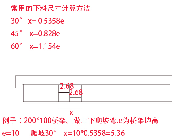 4. 特殊角的下料尺寸x情況如下: