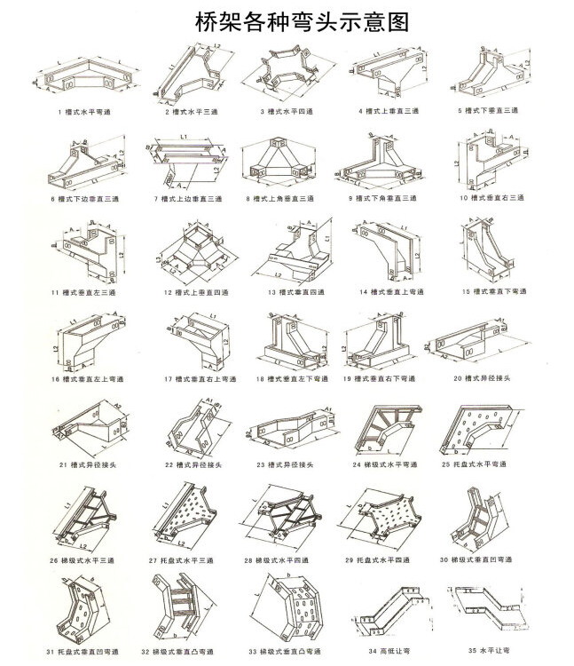 橋架各種彎頭示意圖