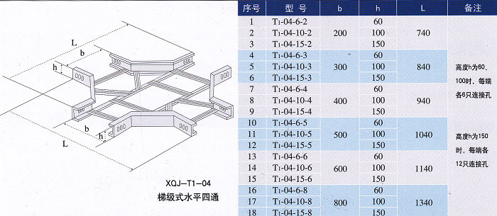 水平四通梯級式橋架型號表