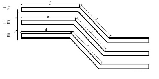 式中:b為層間距,a為第一層橋架兩個(gè)彎頭的間距