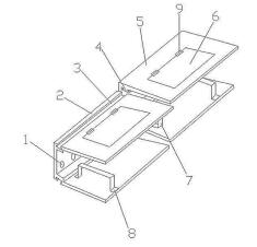 可伸縮電纜橋架,為分段式結(jié)構(gòu),通過相鄰橋假體的相對滑動結(jié)構(gòu),能夠?qū)崿F(xiàn)電纜橋架的伸縮,這極大方便了電纜橋架的運(yùn)輸存儲和安裝,所檢修門通過活頁連接設(shè)置在橋架體B和橋架體A的表面上,該結(jié)構(gòu)能夠方便實現(xiàn)檢修門的開關(guān),以便于操作人員通過檢修門對橋架內(nèi)的電纜進(jìn)行檢修,所述滑動凹槽為工字型結(jié)構(gòu),所述滑動凸緣為工字型結(jié)構(gòu),該結(jié)構(gòu)能夠?qū)崿F(xiàn)相鄰橋架之間的伸縮,安裝時拉開橋架,運(yùn)輸存儲時將響鈴的橋架疊合在一起去減小體積,便于運(yùn)輸存儲,所述電纜上掛架和電纜下掛架的結(jié)構(gòu)相同,包括掛架、活動軸、彈簧和插槽,掛架為橋形結(jié)構(gòu),掛架的一端通過活動軸設(shè)置在橋架體B和橋架體A內(nèi)壁上,另一端插入插槽,插槽設(shè)置在橋架體B和橋架體A內(nèi)壁上,彈簧設(shè)置在掛架的兩端之間,該結(jié)構(gòu)能夠?qū)㈦娎|進(jìn)行分層,分為上下兩層,防止了電纜在橋架內(nèi)雜亂,更加便于后期維護(hù),所述散熱孔為內(nèi)側(cè)闊外側(cè)窄結(jié)構(gòu),該結(jié)構(gòu)一方面能夠方便橋架內(nèi)部的熱量外排,另一方面能夠防止外部雜物進(jìn)入橋架內(nèi),損傷電纜。
